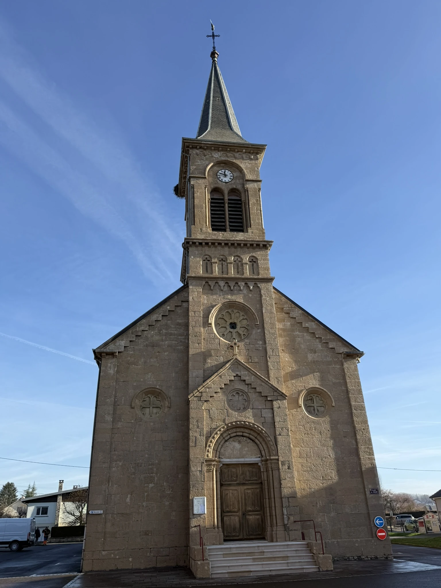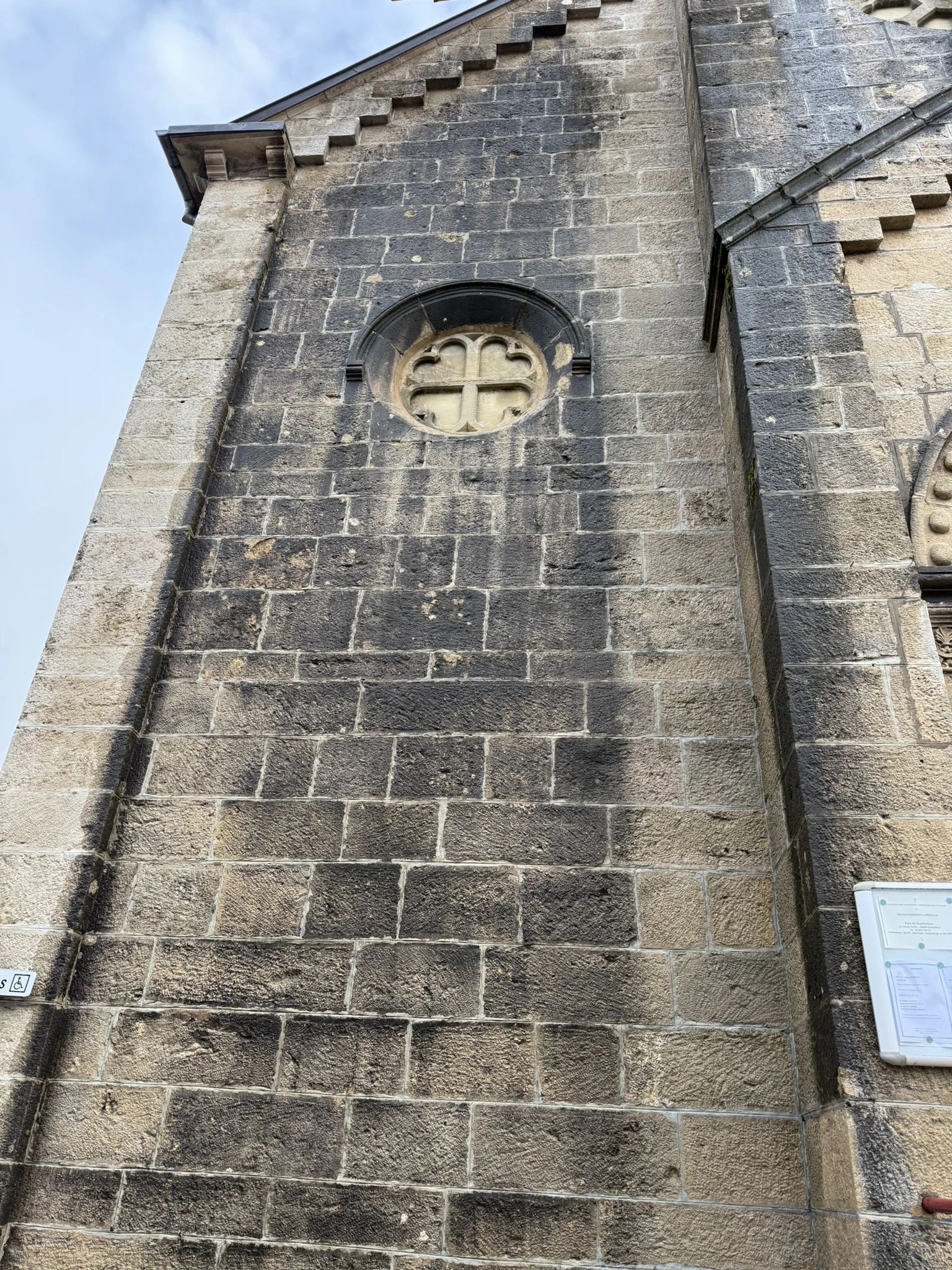 L’utilisation d’un équipement de protection adapté et de moyens d’élévation sécurisés (nacelle) a permis d’intervenir sur les parties hautes de l’église, notamment au niveau de la façade et du clocher, en toute sécurité.