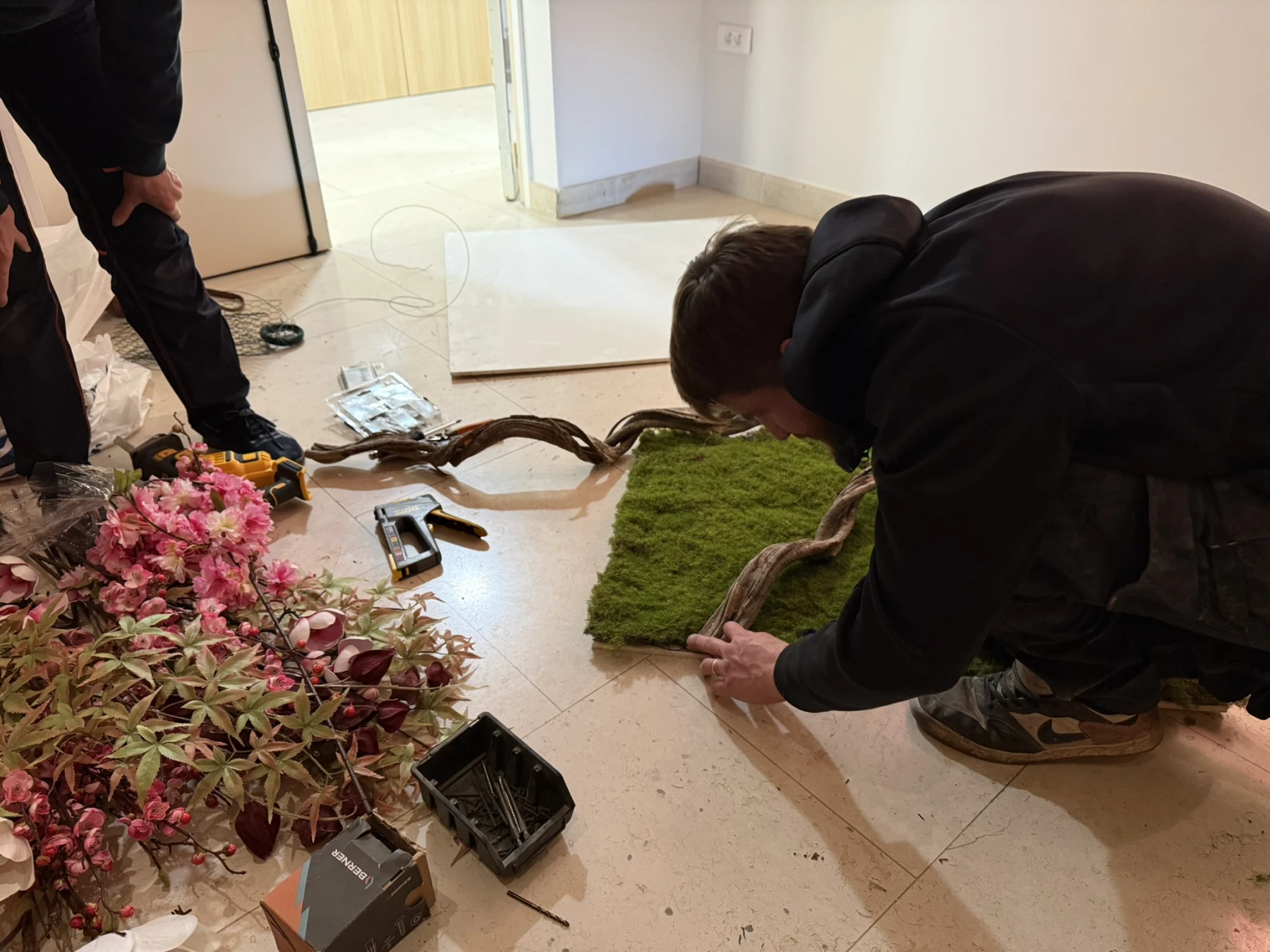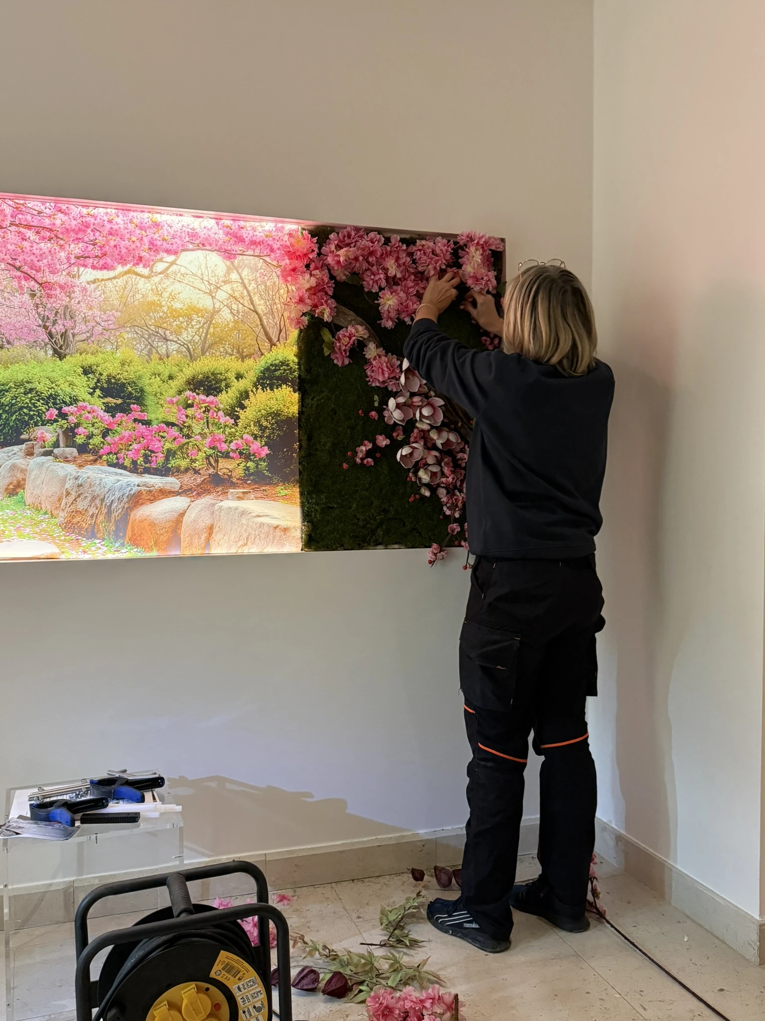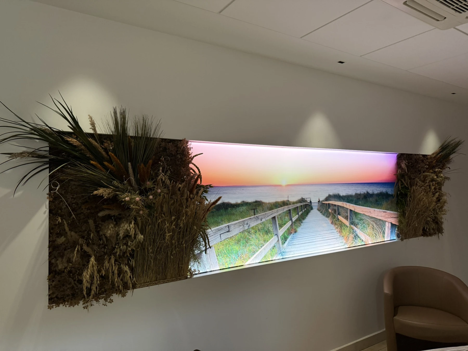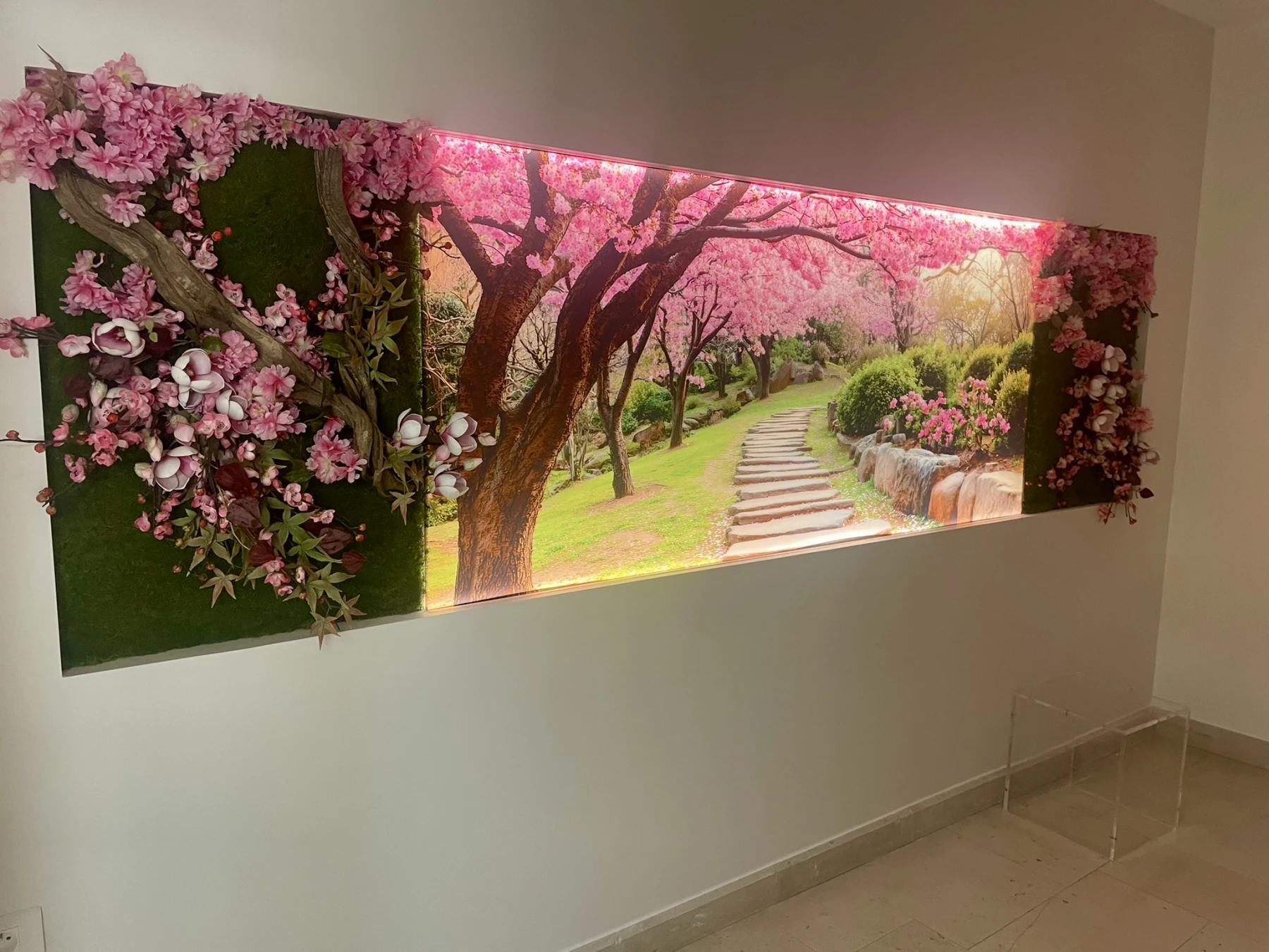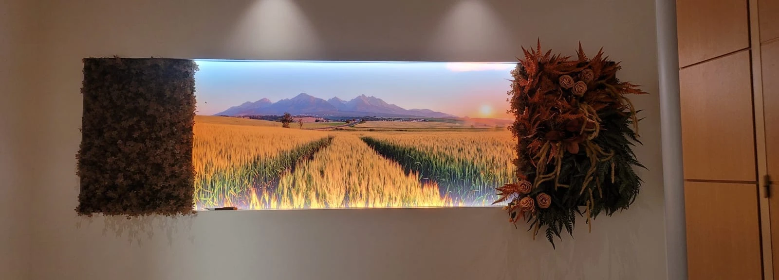 Nous avons récemment eu l’honneur de décorer trois chambres funéraires en y intégrant une décoration florale artificielle sur mesure, pensée en harmonie avec les posters présents dans chaque salle.