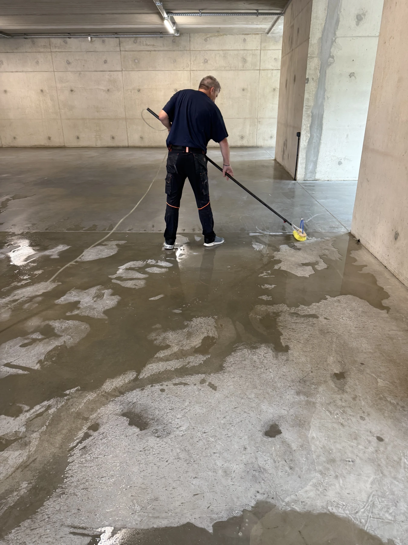 - 🔸 Sol en béton lissé : dégraissage, dépoussiérage et rinçage